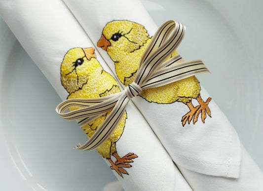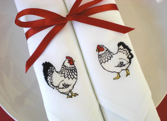 Embroidered Chicken Cocktail Napkins - Set of Four