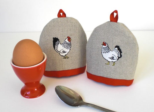 Mr & Mrs Chicken Egg Cosies - Set of Two Embroidered Linen