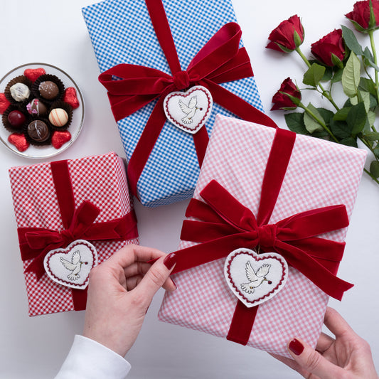 Luxury Reusable Gingham Fabric Gift Wrap with Velvet Ribbon Ties