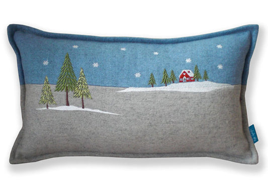 Embroidered Winter Lodge Christmas Cushion